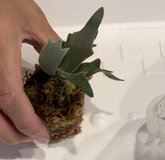 だから、根を傷めないように、水苔は解さずそのまま板に付けることにしました。